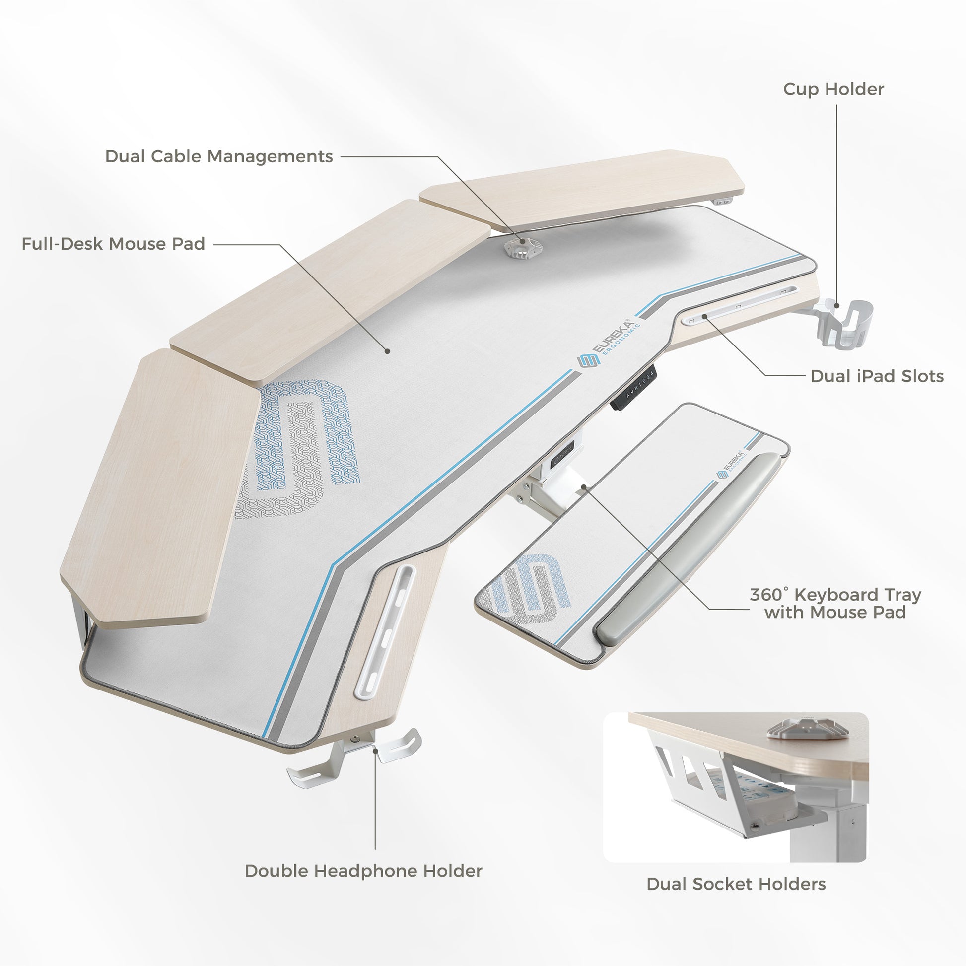 This desk understands what creators need. There's ample room for my audio interface, microphones, and lighting. The sturdiness means I don't have to worry about vibrations affecting my recordings. The wing shape gives me easy access to all my gear. A superb investment.