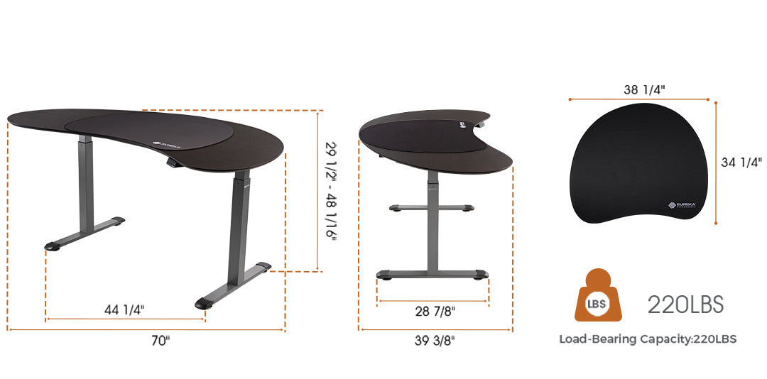 - INNOVATIVE STYLE: 70" x 40" Ergonomic Cashew-shaped Standing Desk with Eco Curve design