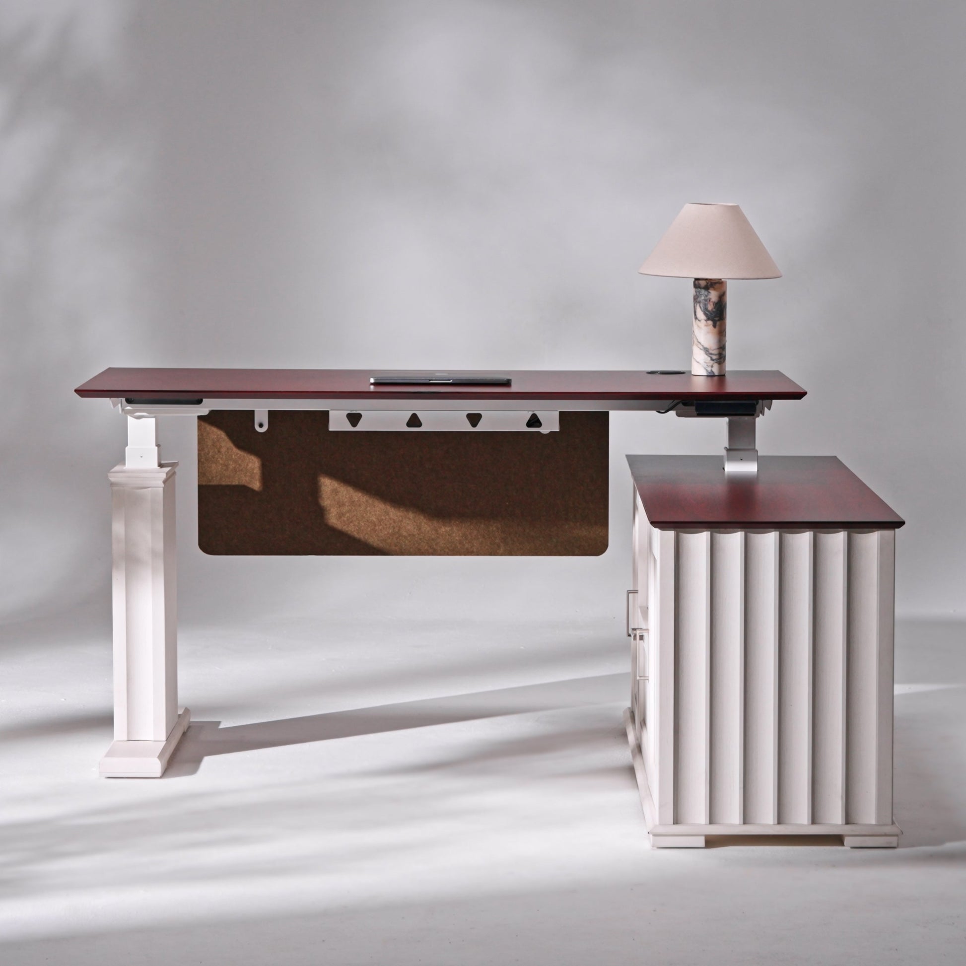 - Stylish Side Cabinet : An accompanying side cabinet elevates the design with its clean lines and refined aesthetic, while offering ample space to tuck away office essentials.