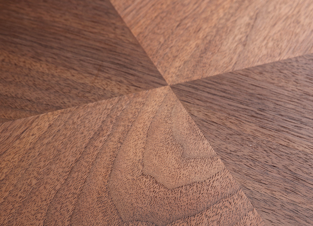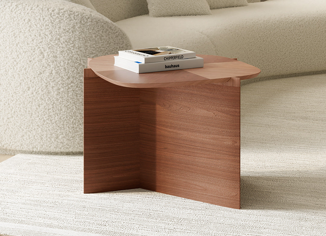 The surface of walnut side table shows a distinctive visual depth and three-dimensional effect. This innovative design not only elevates the desktop to a piece of art but also imbues the entire space with a trendy and sophisticated ambiance.