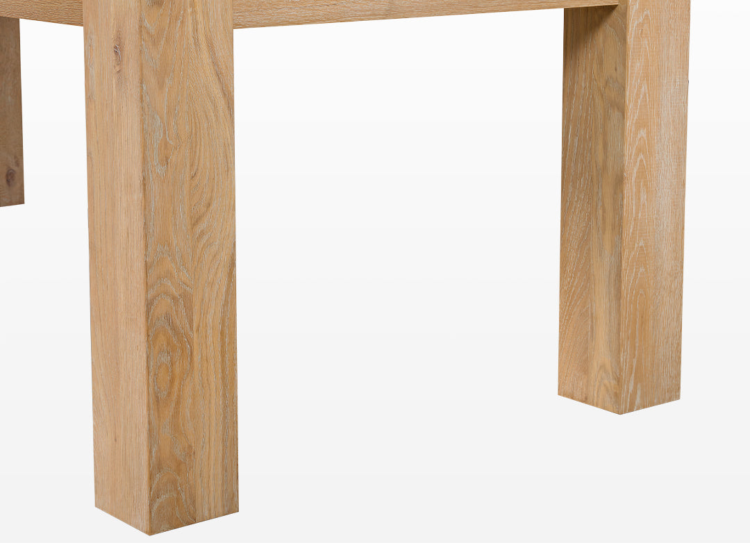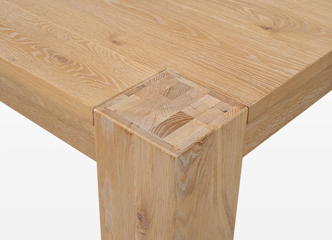 This Parsons-style dining table seamlessly blends classic design with modern practicality. Extending from 70.9" to 92.5", it adds 21.6 inches to comfortably seat more guests. The removable leaf conveniently stores inside the table, eliminating the need for extra storage. Featuring clean lines and a grain-matched oak veneer, it is an ideal centerpiece for both daily meals and special gatherings.