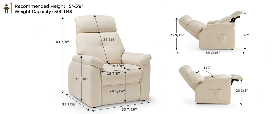 - Functional Design: Our recliner features storage compartments on both sides of the armrest. Keep your remote controls, books, and other essentials within arm's reach, eliminating the need to frequently get up and disrupting your chillout session.