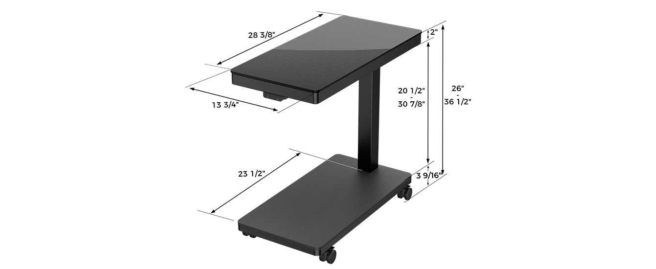 Height adjustable from 25.98 inches to 36.42 inches so that the PC stand can be placed under the desk or next to the table.