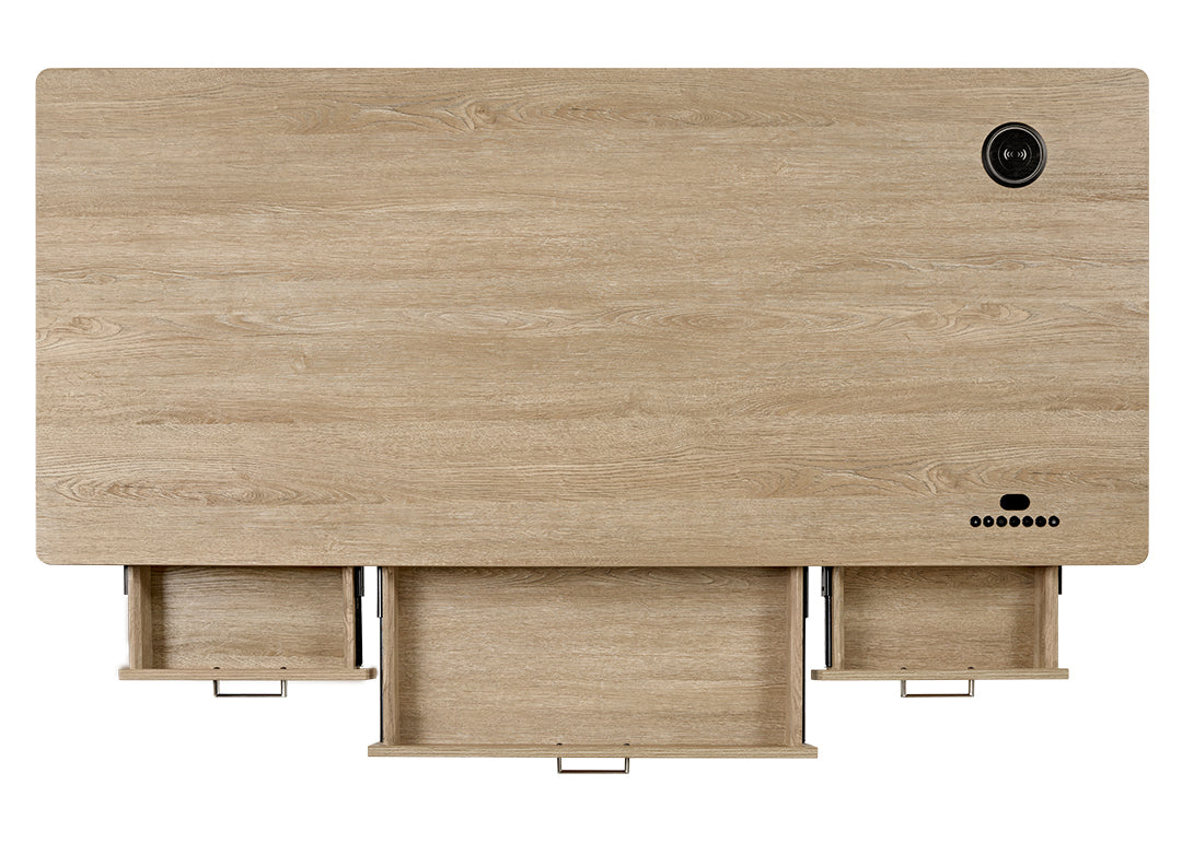 - Charging Configuration: Built-in USB ports on the desktop and a wireless charging function
