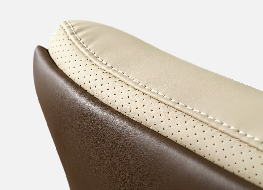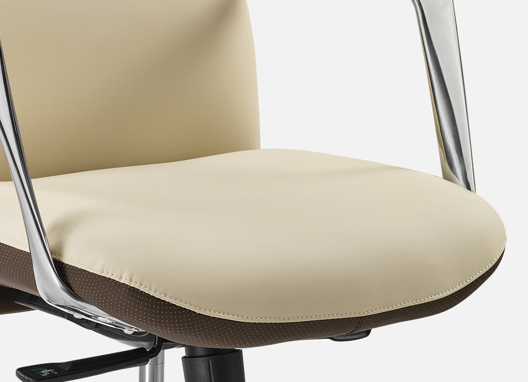 Crafted with sleek synthetic leather and supported by a durable chrome-plated iron base, the Royal Slim blends minimalist design with practical comfort. Its ergonomic lumbar curve and medium-density foam cushion provide essential back support, making it perfect for long work sessions.