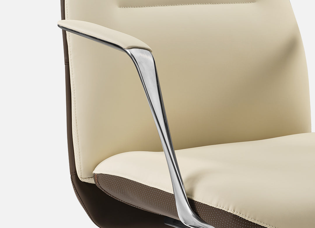 Polished aluminum alloy armrests add a sleek, structural finish.