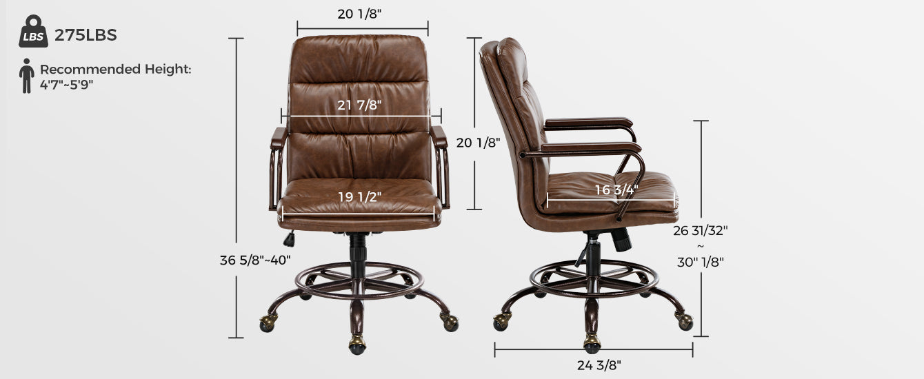 Love it!I love my new chair! It is perfect for me and I am so much more comfortable at work. I ordered the brown chair and it's sleek in design and I get so many compliments. Thank you Eureka!