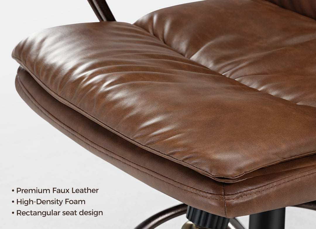 This chair offers a high-end look at a reasonable price. The seat is more upright than my previous chair, likely improving posture. Its sleek design makes it a five-star choice.