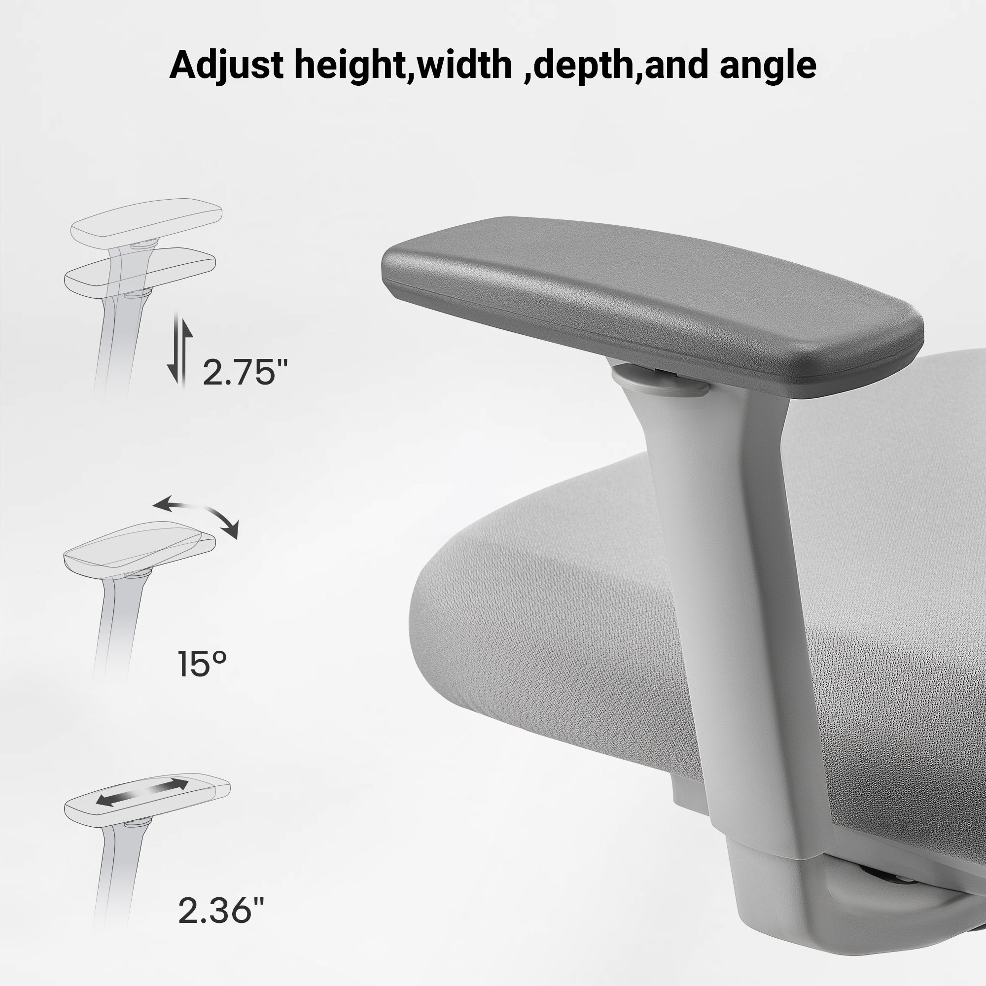 - Adjustable Armrests: with 3D adjustable armrests that offer vertical lift, 15° left/right rotation, and forward/back sliding, allowing full customization to your desk height and posture for optimal ergonomic support.