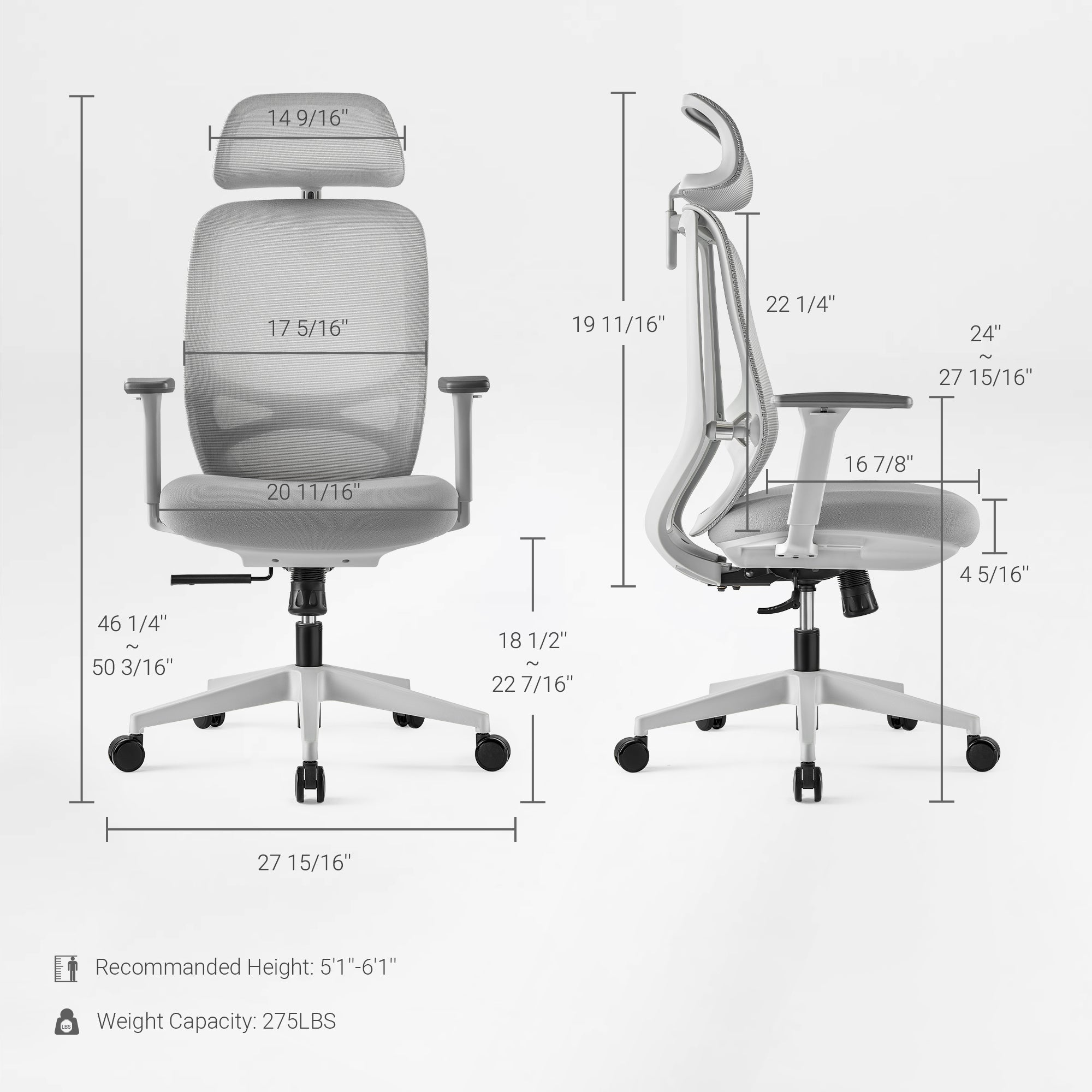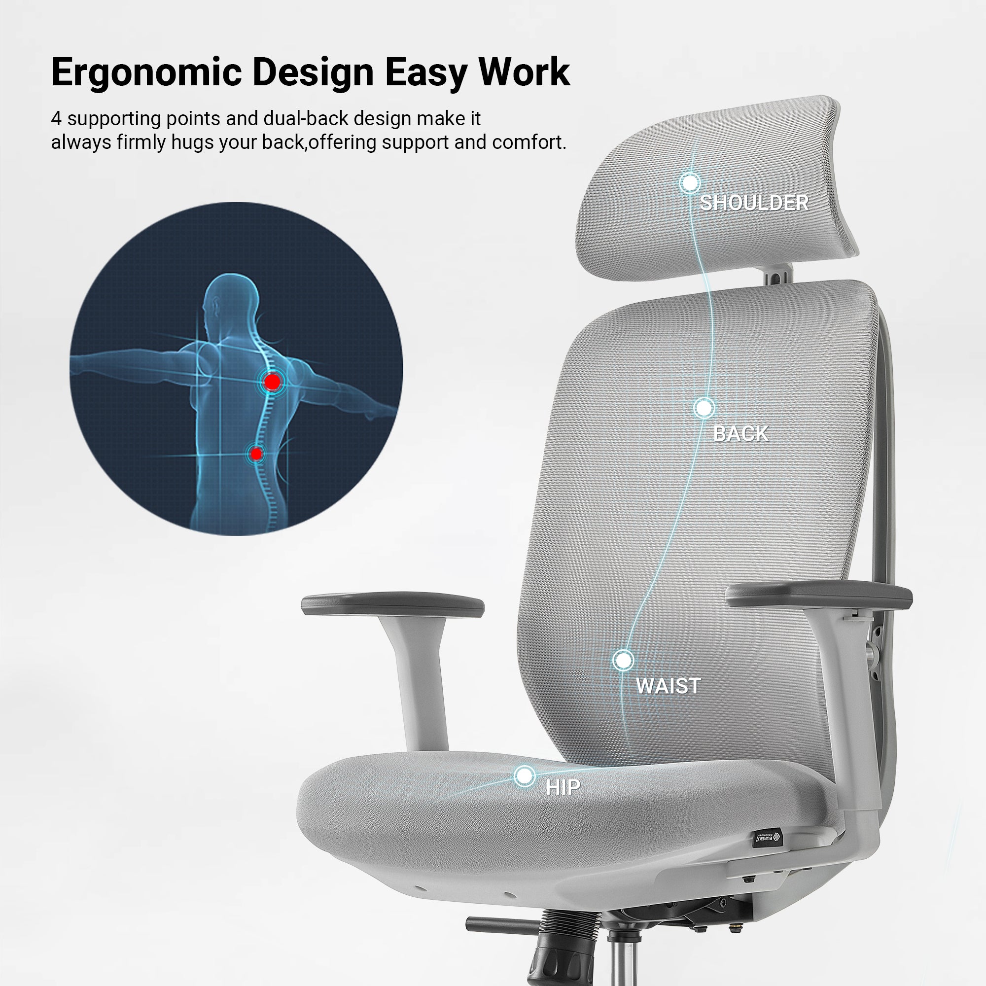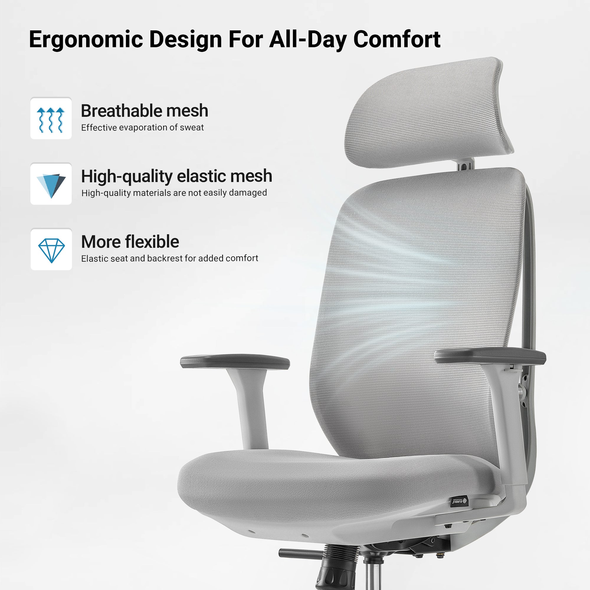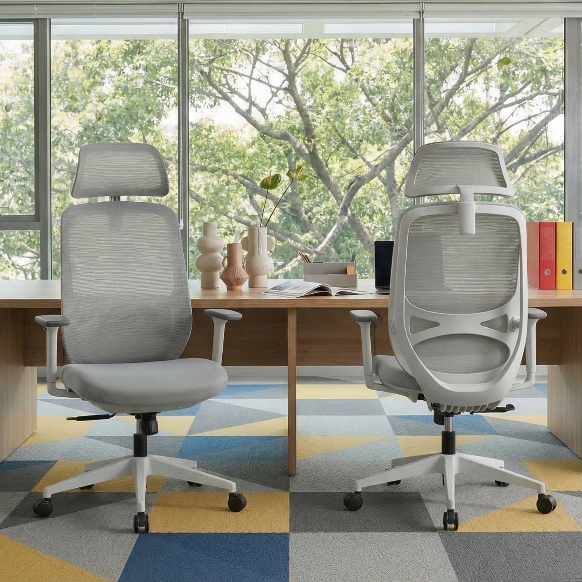 I was originally worried that an "ergonomic" chair would look too industrial and ruin the cozy vibe of my home, but I was so surprised at how the grey and white color palette blends perfectly with my wooden desk! I spend at least 6 hours a day here, whether I’m coding or just chilling with some music.🎧 The biggest surprise for me was the headrest and back support—it hits exactly where my neck usually feels the most tension. Also, the casters are super smooth and silent on my floor mat.🥰