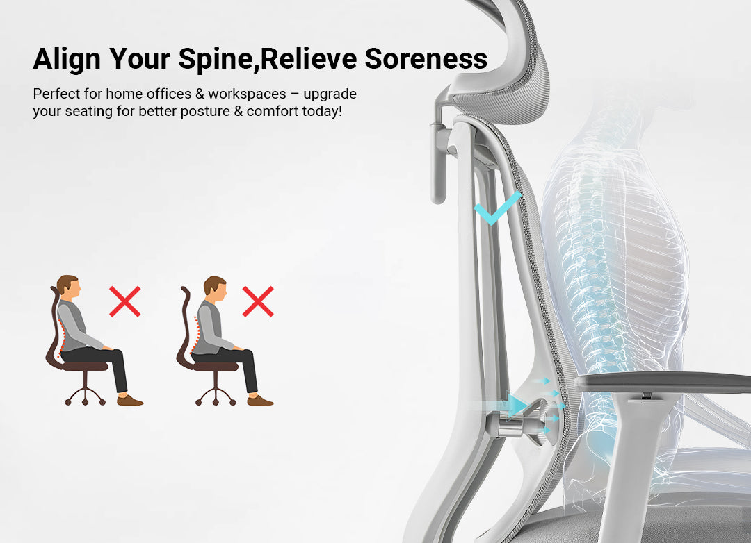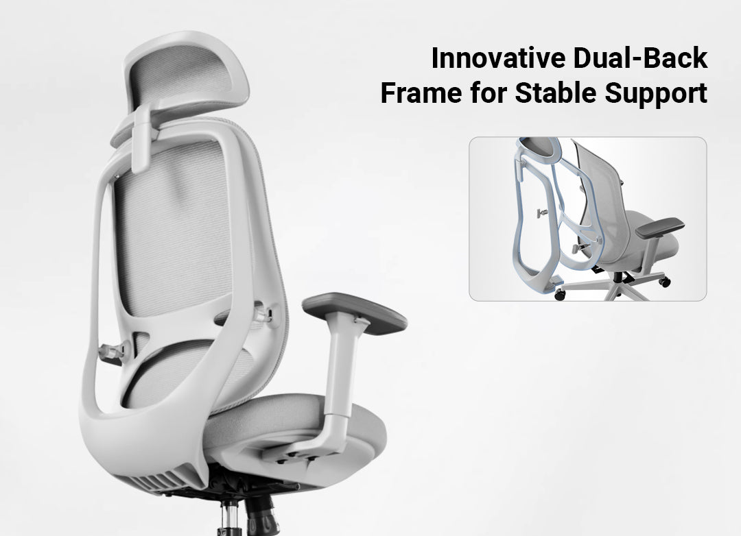 - Adaptive Support with Dual-Back Frame: A spring combined with the dual-back frame adapts to your posture, offering gentle, targeted support for your lower back.