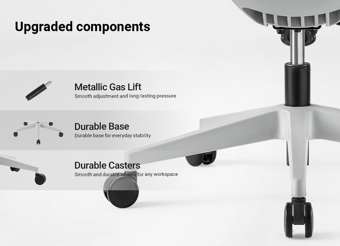 Upgraded components that deliver smooth adjustability, stable support, and quiet mobility—so you can focus on work, not your chair.