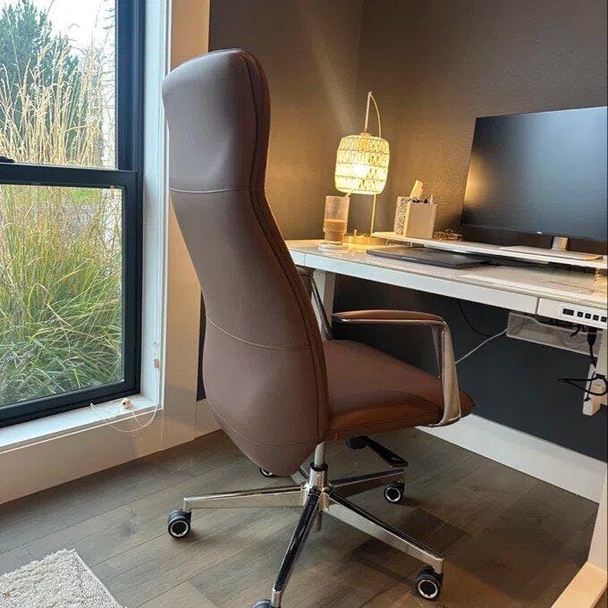 I wanted a chair that didn’t scream “office,” and this one fits seamlessly with my walnut desk and mid-century décor. The clean silhouette and rich leather tone add warmth without feeling flashy, and it honestly makes me look forward to sitting down to work.