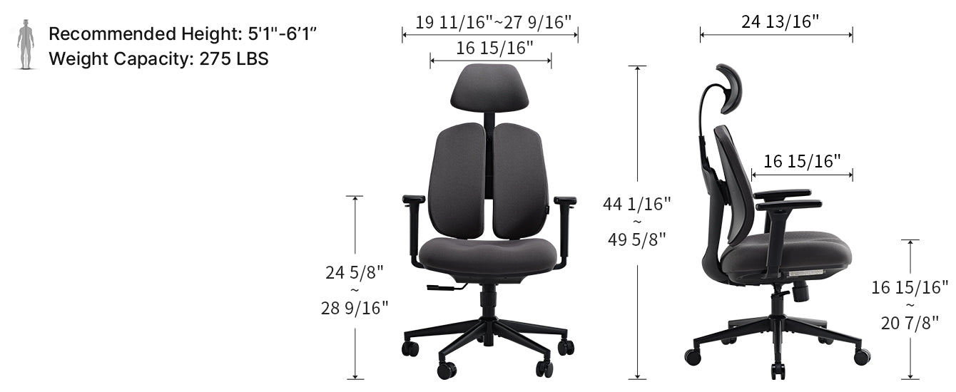 Upgrading from a single-back chair to this dual-backrest model was eye-opening. The vertical adjustment range lets my wife (5'2") and I (6'1") use the same chair without resetting anything – just slide the backrest to our preferred height before sitting. Finally, proper lumbar support that adapts to different body types during work hours.