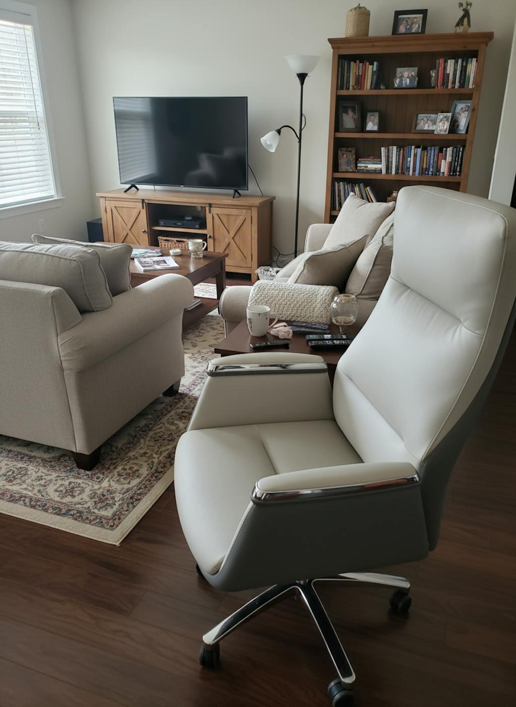 When the chair arrived, it exceeded every expectation. The finish is gorgeous—especially in natural light—and it feels more like a high-end lounge chair than office furniture. It swivels and adjusts smoothly, and it fits right in with my home décor.