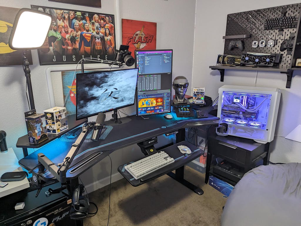 It's also a great standing desk, though I won't be using it often for this purpose. It comes with many cable management tools, though I haven't applied all of them yet while I play with the desk more. A lot of my friends seem very jealous of this desk, it's well worth the cost.