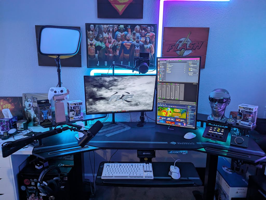 The ultimate standing desk to take you from work to gaming. The spacious 72” surface gives you plenty of room for your dream setup, while LED light strips set the perfect mood from focused work sessions to after-hours gaming. Customizable shelves, advanced features, and bonus accessories make this desk the real MVP.
