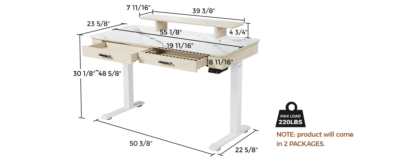 Upgrade your workspace with the 55x23 Slate Standing Desk. With a refined artificial marble desktop, this desk offers a perfect balance of style and practicality for your home office.