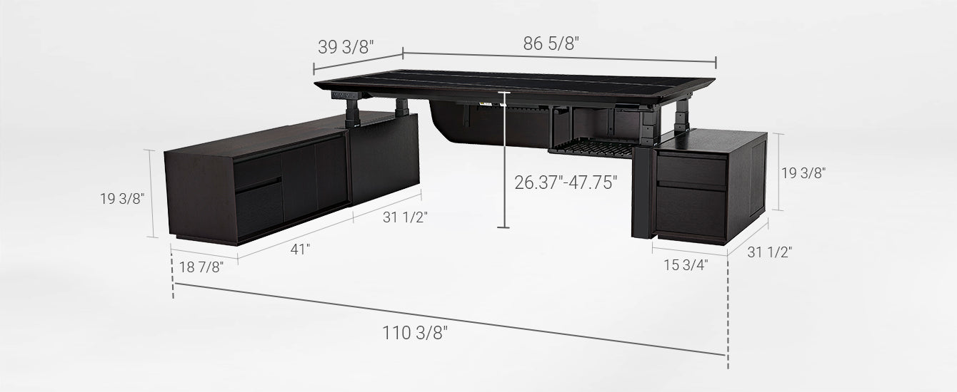 Meticulously designed for those who demand the finest, this piece sets a new standard in premium craftsmanship. With a flawless finish, timeless elegance, and intelligent storage solutions, it seamlessly blends sophistication with function. Built-in power and an extended height range elevate both comfort and convenience, ensuring a workspace that’s as refined as it is practical.
