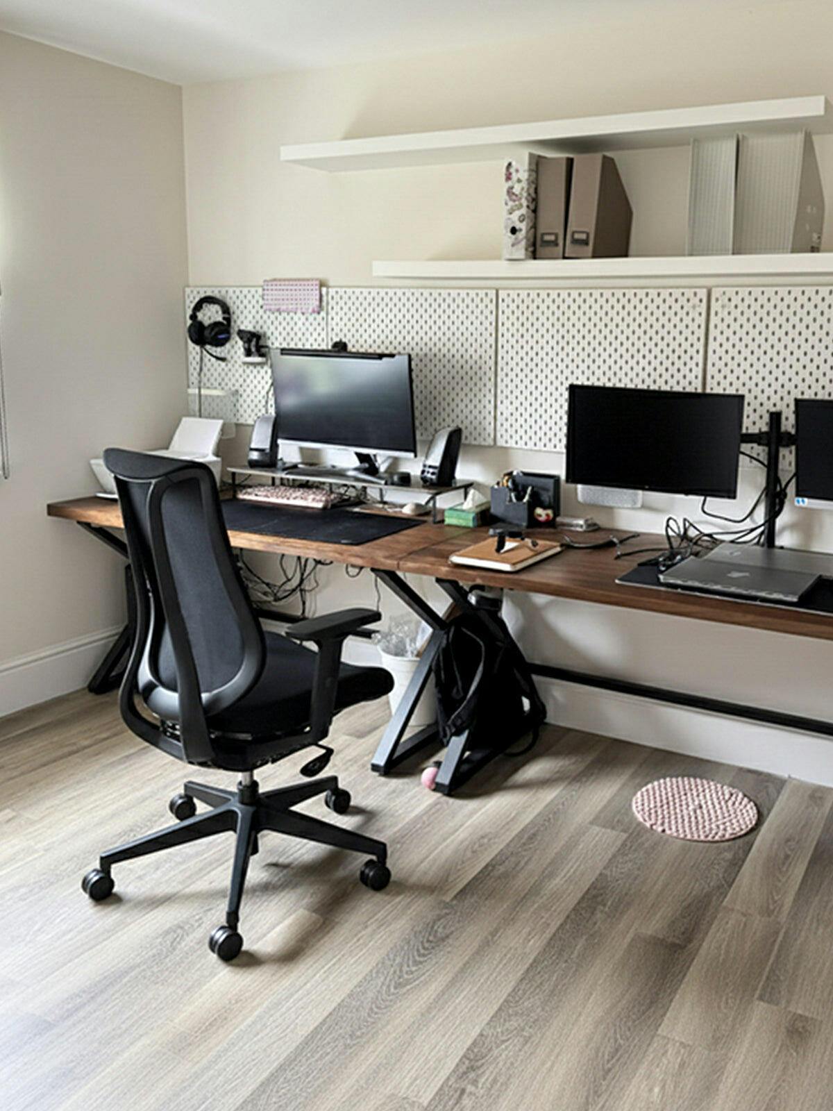 I was looking for an office chair that didn't look like a typical office chair, and this one is a work of art. My decision was based almost entirely on its aesthetics, and it did not disappoint. The craftsmanship is obvious, especially the beautiful walnut grain on the back—it has a warm, premium feel that elevates the entire room.If you're looking for a chair that makes a strong design statement, this is absolutely the one.