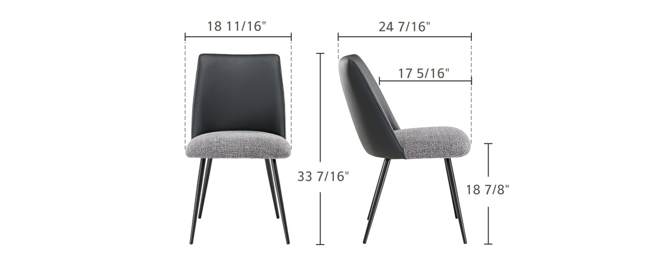 Solace, Upholstered Dining Side Chairs Set of 2, Black Gray