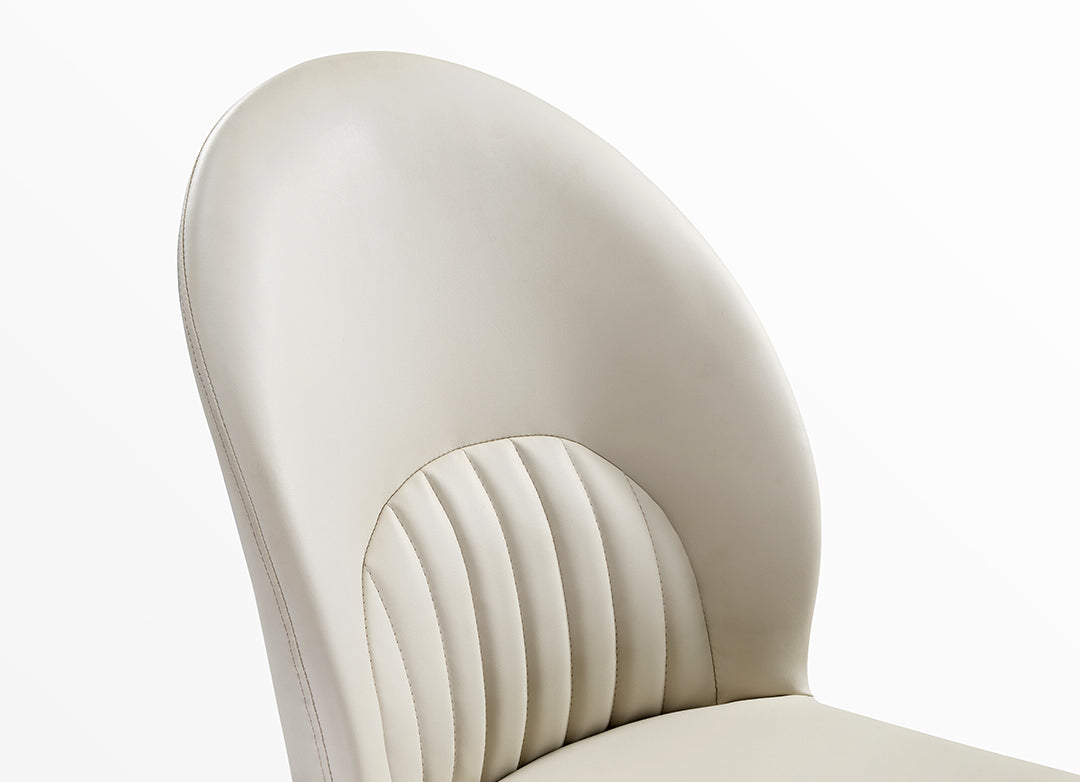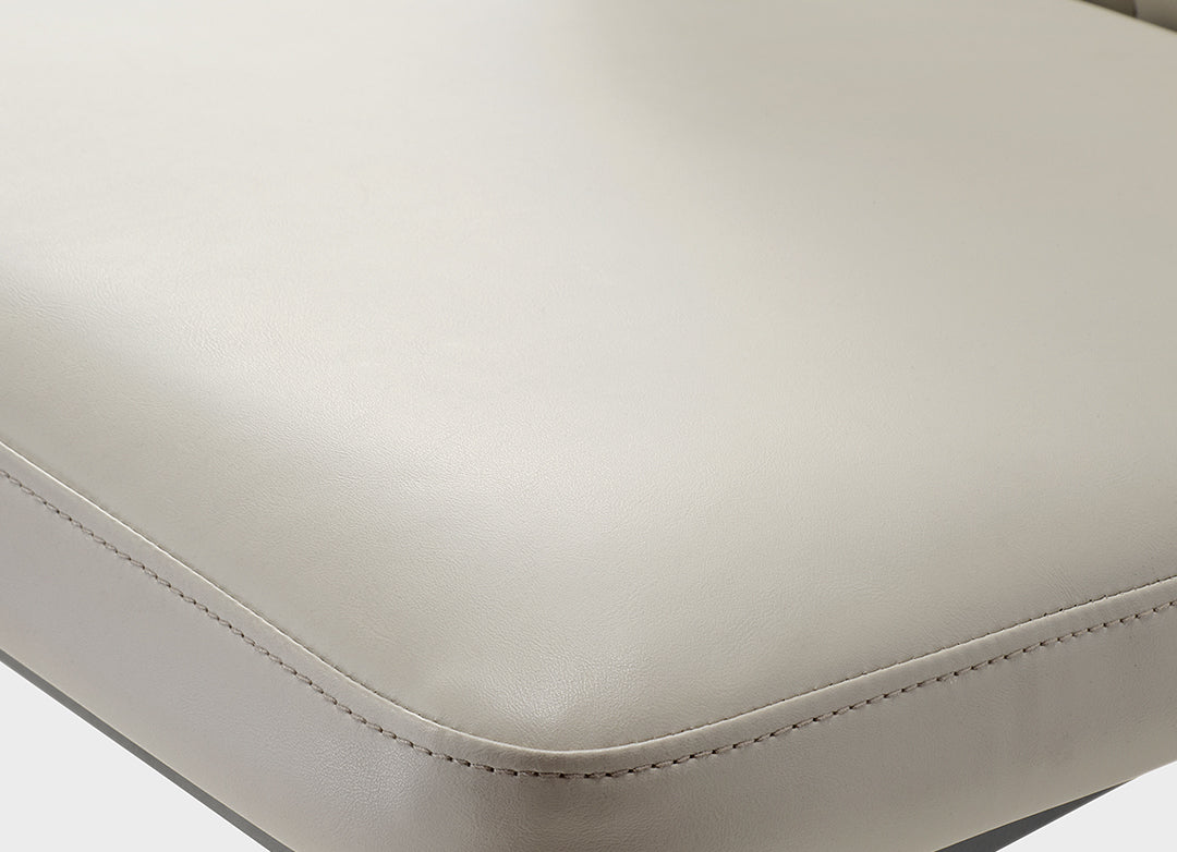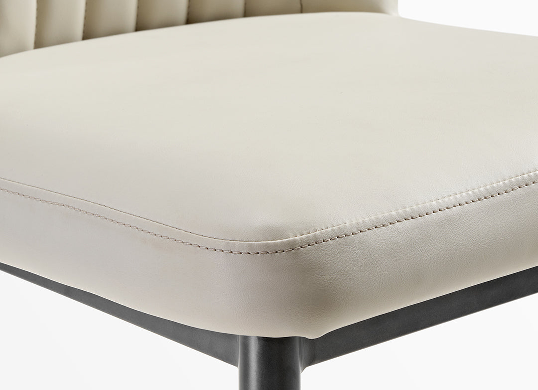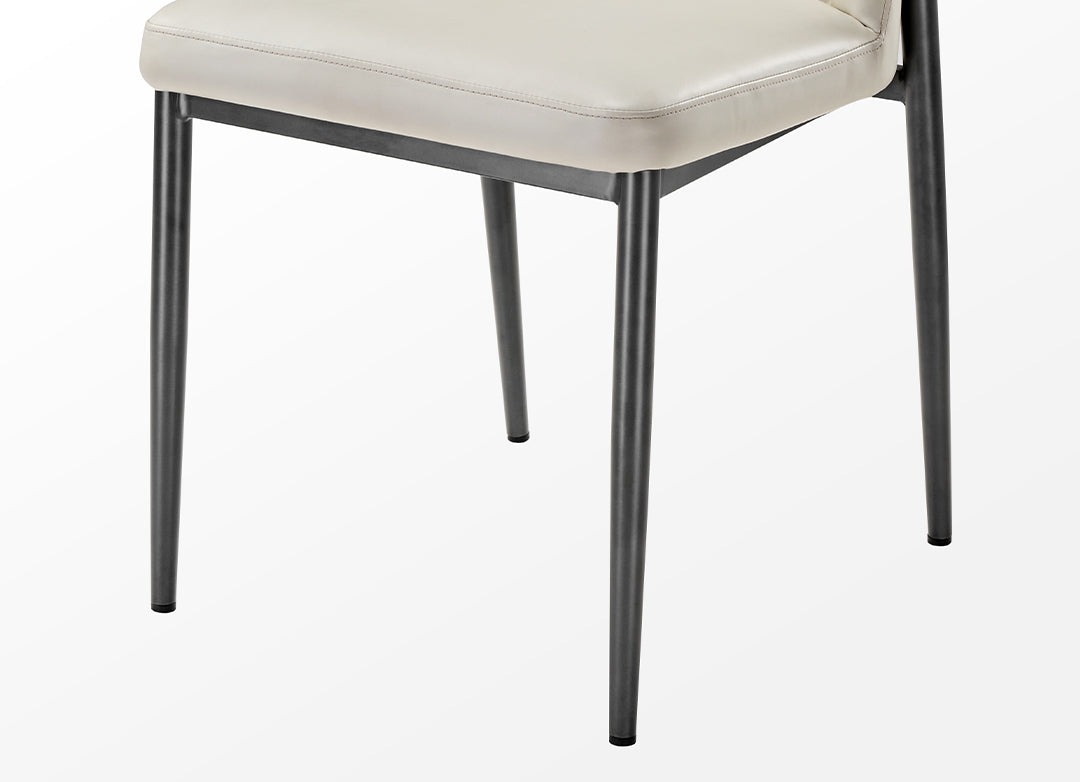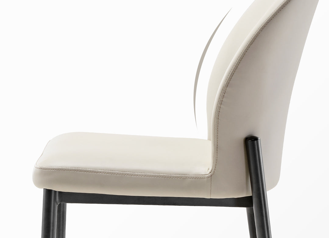 Featuring a minimalist design, our dining chair combines light-toned leather with a black base, devoid of any intricate decorations or colors. The overall presentation embodies the minimalist Italian lifestyle aesthetic, crafting a warm and chic sense of home beauty.