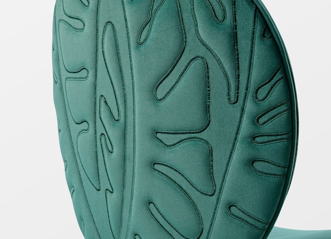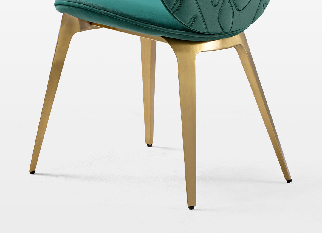 Vintage light luxury dining chair, crafted with velvet fabric and embellished with unique embossed embroidery craftsmanship, adding a touch of artistic sensibility to life.