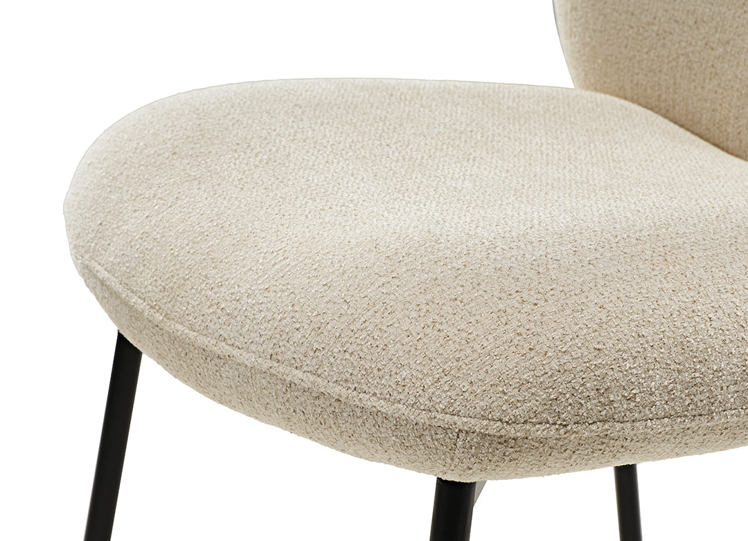 The minimalist design, along with the use of soft and textured beige fabric, enhances the comfort and aesthetics of the backrest.