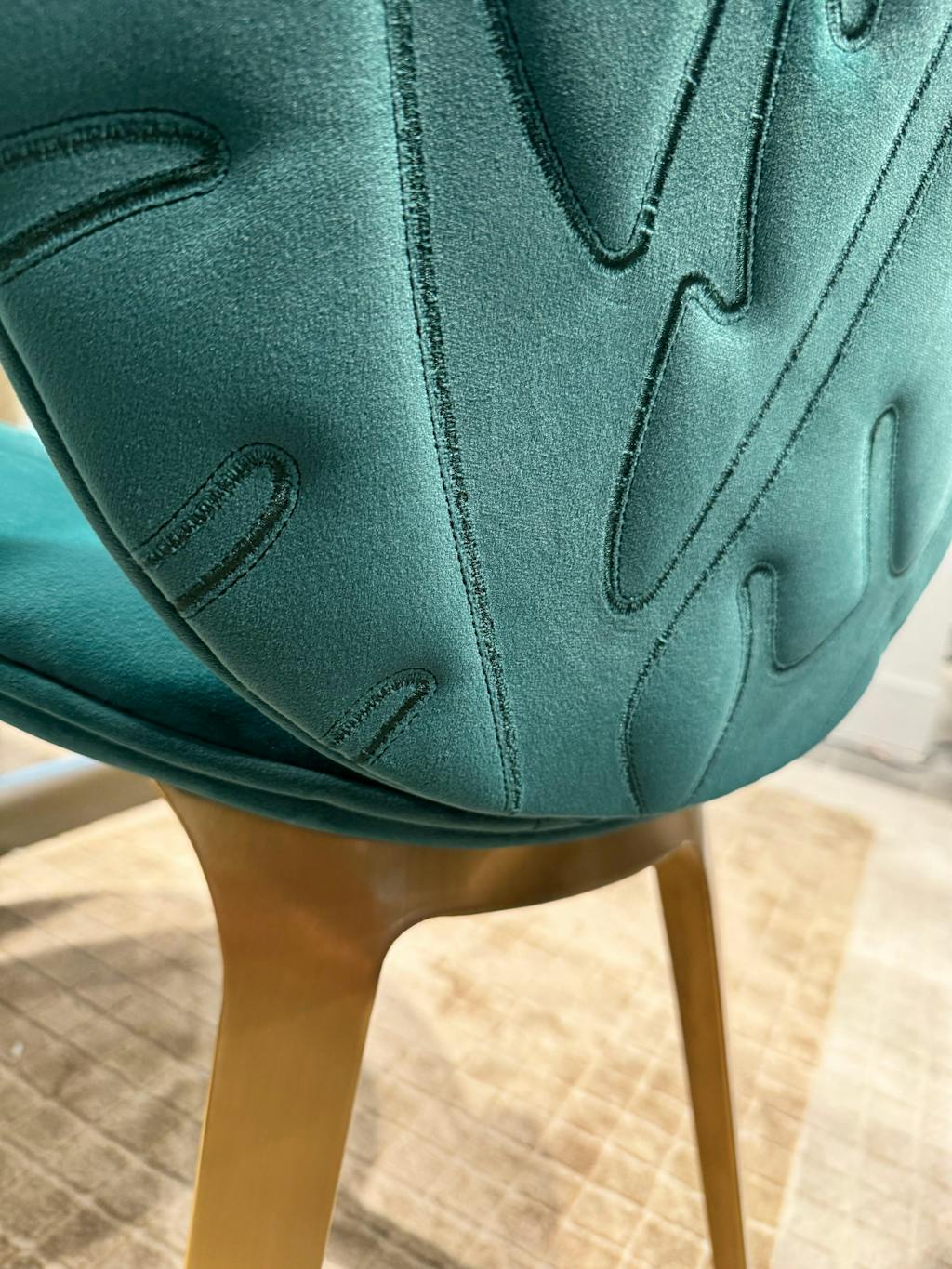 Vintage light luxury dining chair, crafted with velvet fabric and embellished with unique embossed embroidery craftsmanship, adding a touch of artistic sensibility to life.