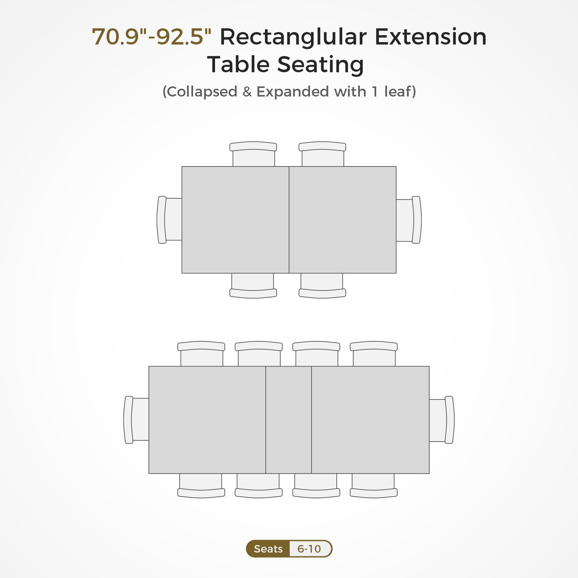 - Expandable Convenience: Extend the tabletop by 21.6 inches to easily accommodate more guests. The removable leaf stores neatly inside the table, keeping it close at hand without taking up extra space. Seats 6 guests without the leaf and up to 10 guests when fully extended.