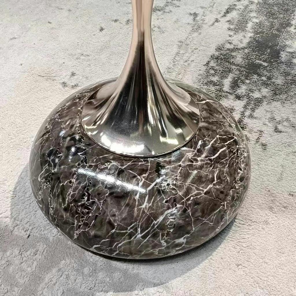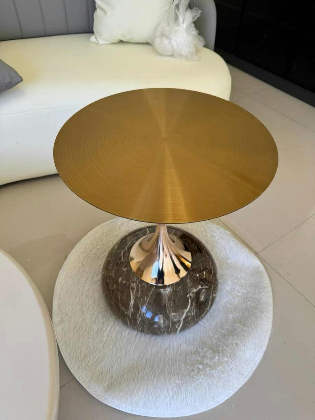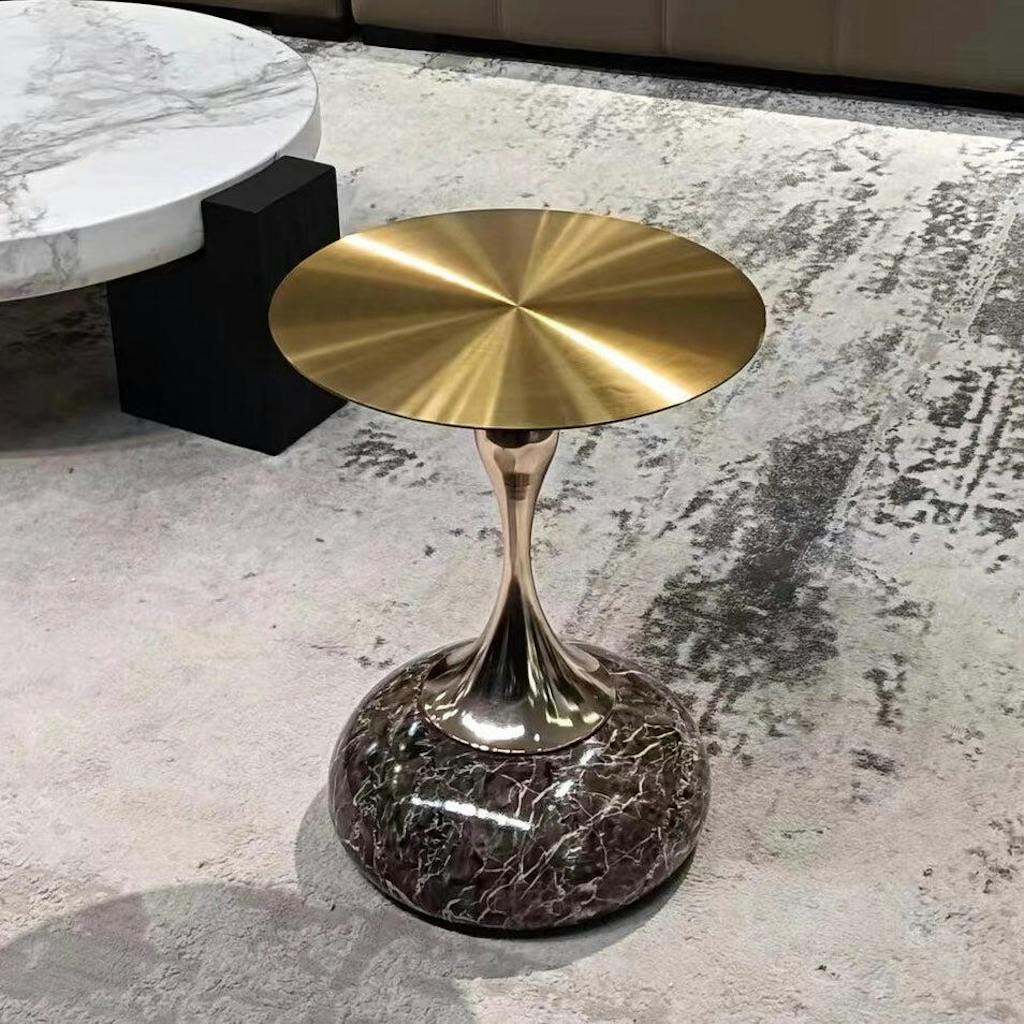 Experience a boost of sophisticated style in your living room with this remarkable end table. Its distinctive design sets it apart, making it a standout piece in any home decor. The stainless steel top and stone base combination not only adds to its visual appeal but also ensures its durability and resilience. If you're looking for a contemporary end table that complements your home perfectly, this is the ideal choice to achieve a modern and refined look.