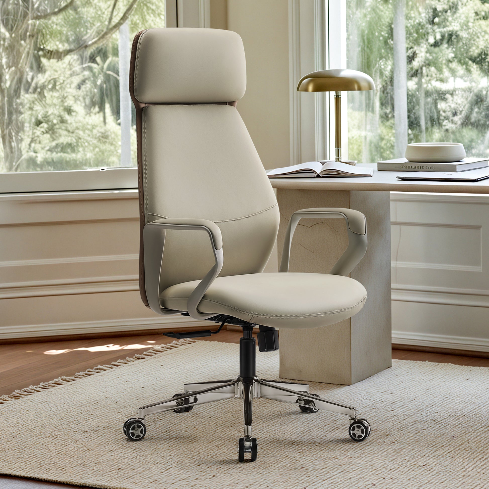 The Aric Executive Office Chair features premium faux leather for a comfortable seating experience. Its high-end style elevates any office, adding both comfort and visual value to your workspace.