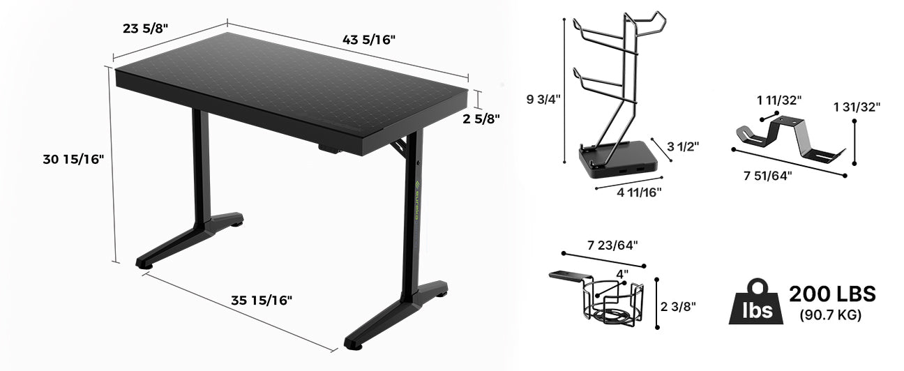 - Included Accessories: Cup Holder, Headphone Hook, Controller Stand, Cable Management Tray, Mousepad