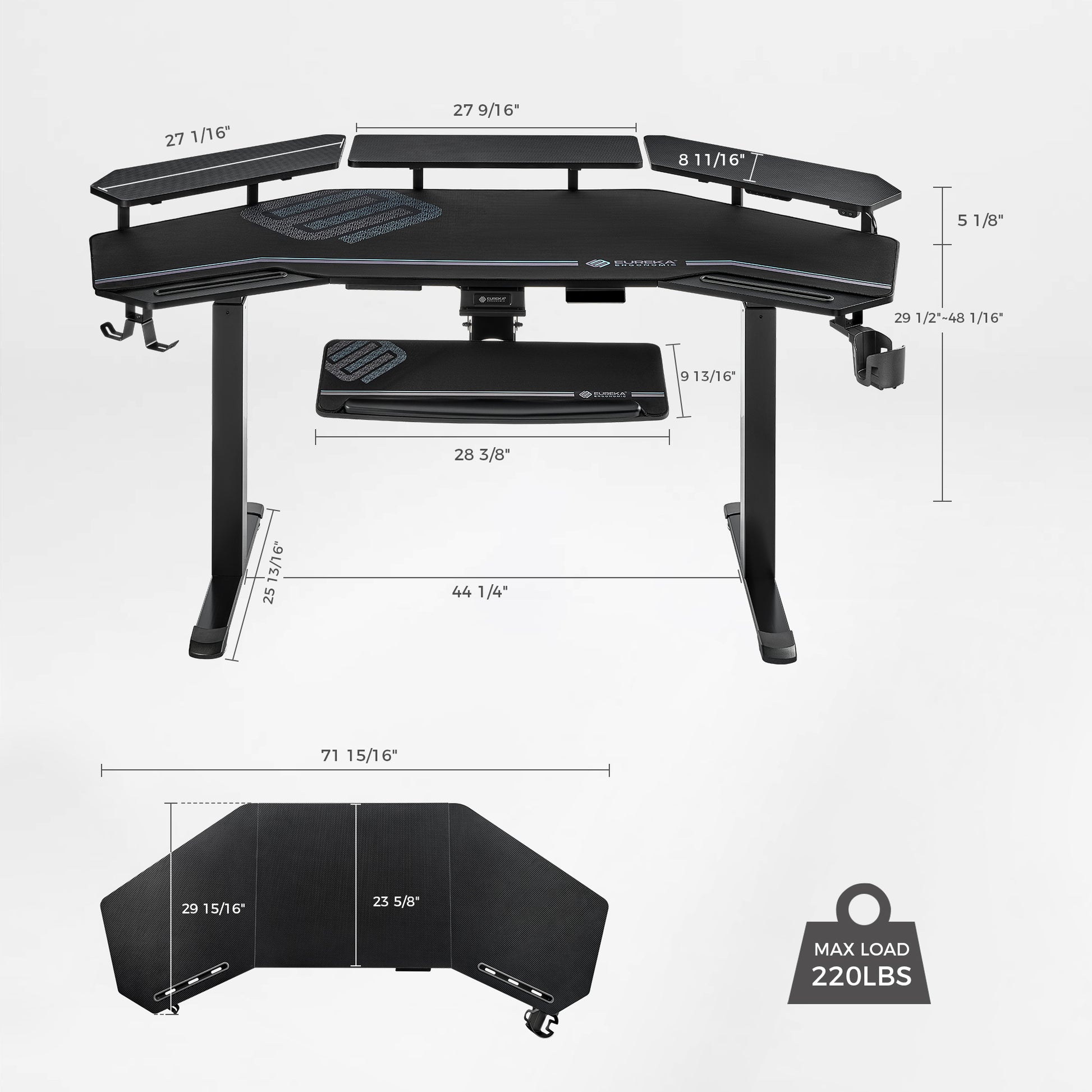 - Spacious, Durable Design: The 72” x 23” surface with a durable, easy-to-clean laminate finish offers plenty of room for your ultimate setup.