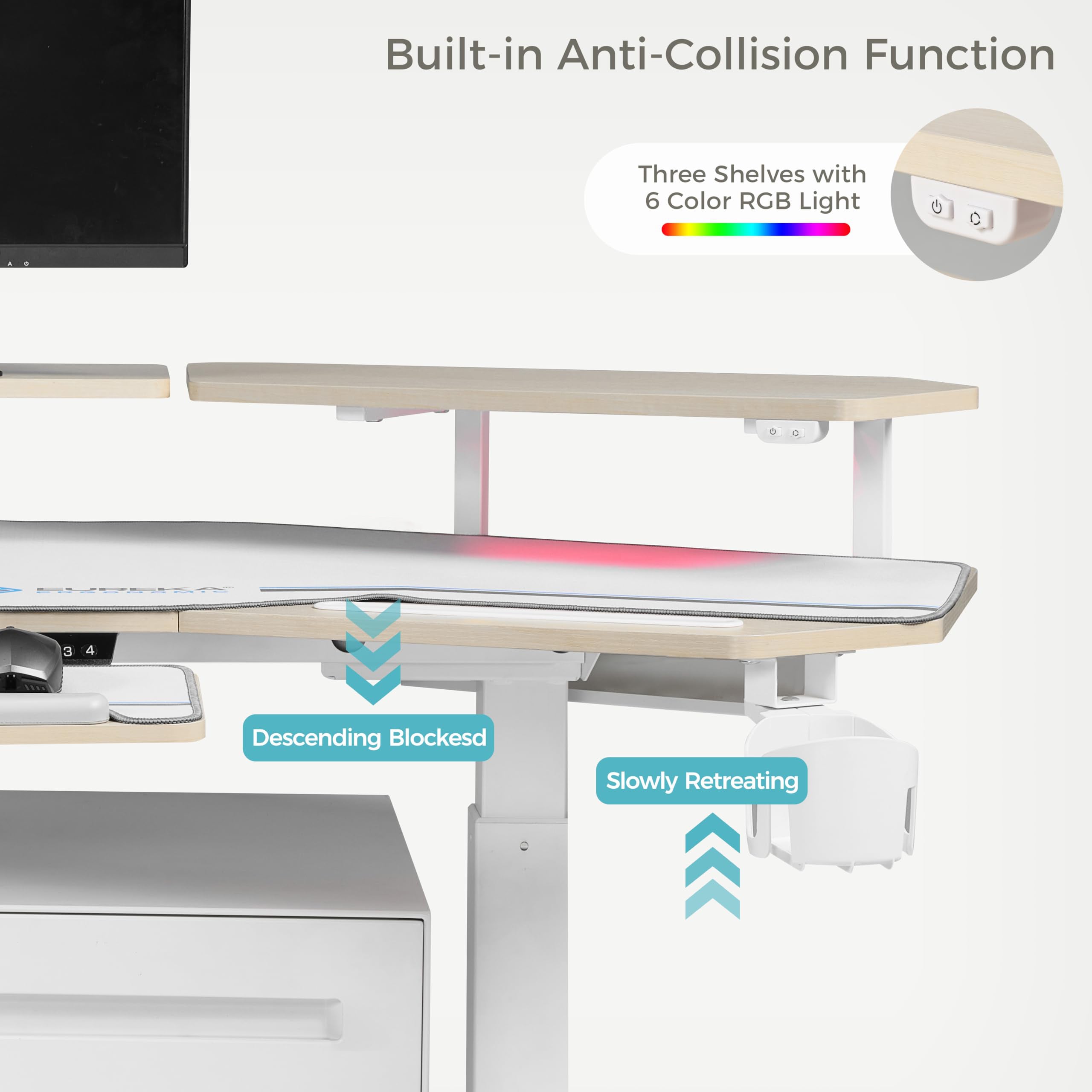 The ultimate standing desk to take you from work to gaming. The spacious 72” surface gives you plenty of room for your dream setup, while LED light strips set the perfect mood from focused work sessions to after-hours gaming. Customizable shelves, advanced features, and bonus accessories make this desk the real MVP.