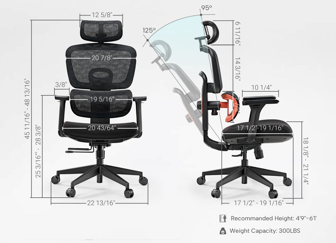- Adjustable Recline: The Cyra ergonomic chair features 4 adjustable recline positions, with a maximum tilt angle of 145°, allowing you to find the perfect sitting posture for both work and relaxation.
