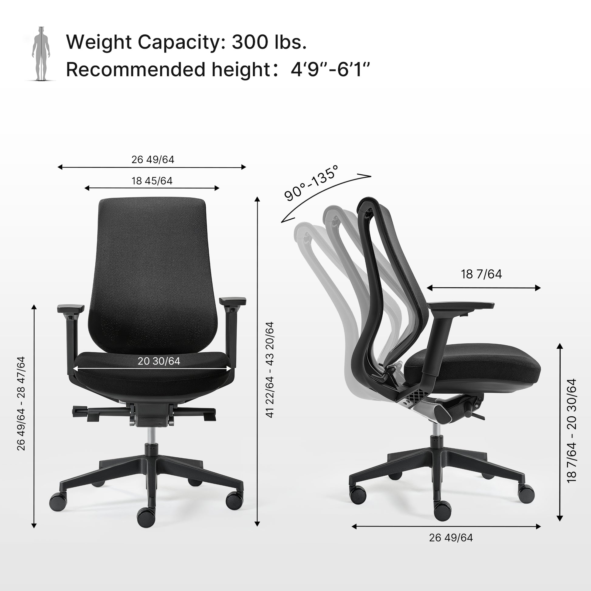 - Recline: 90°-135°