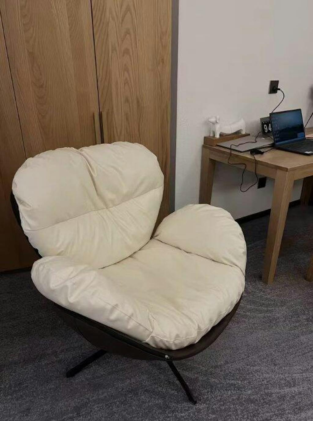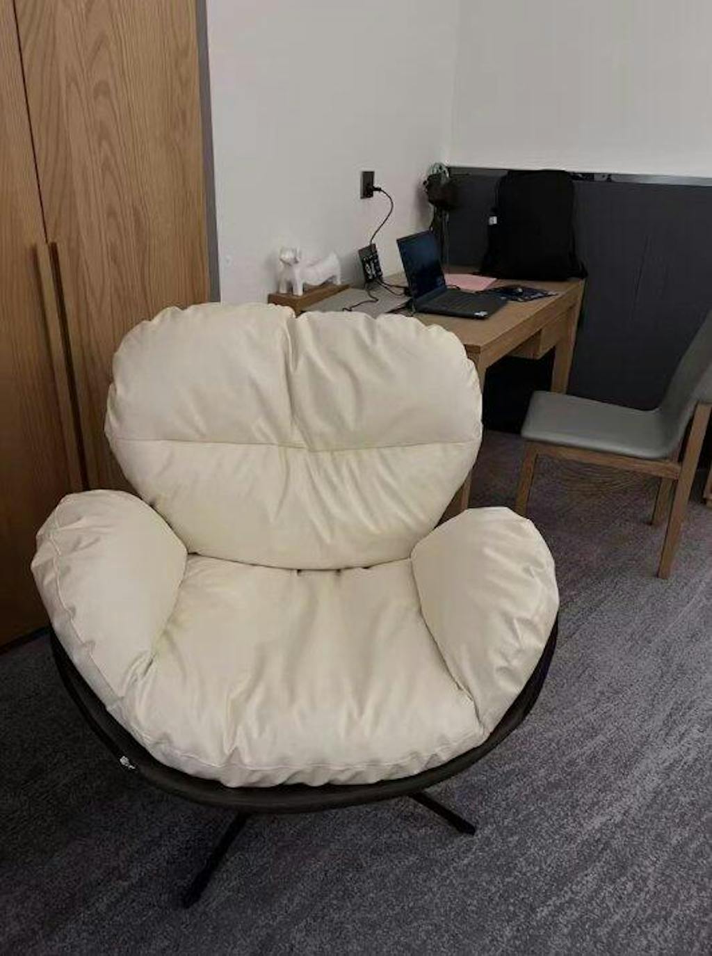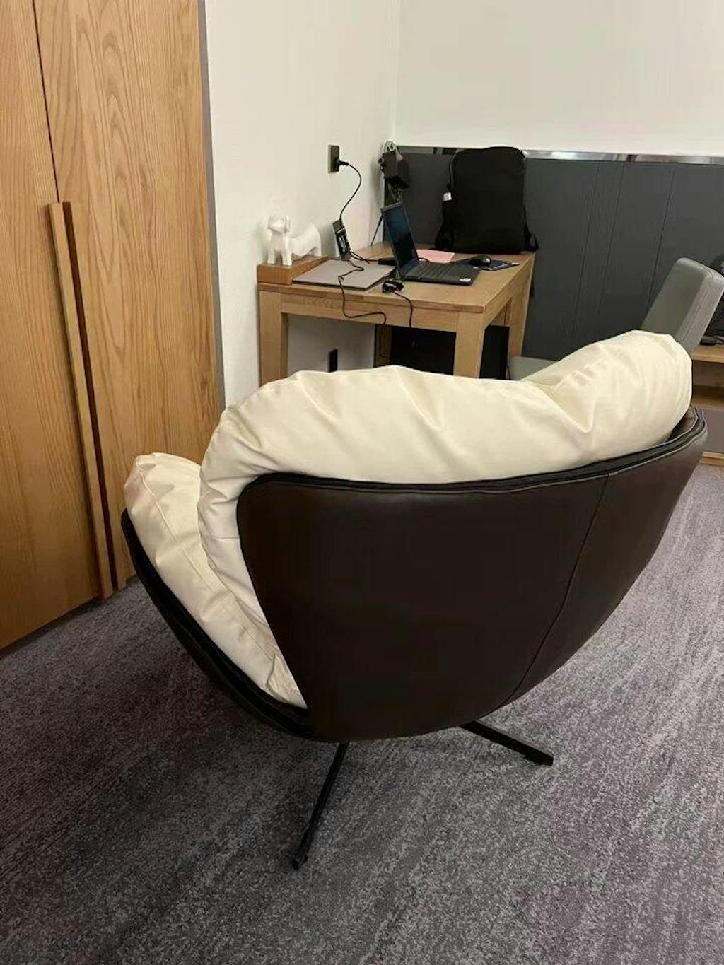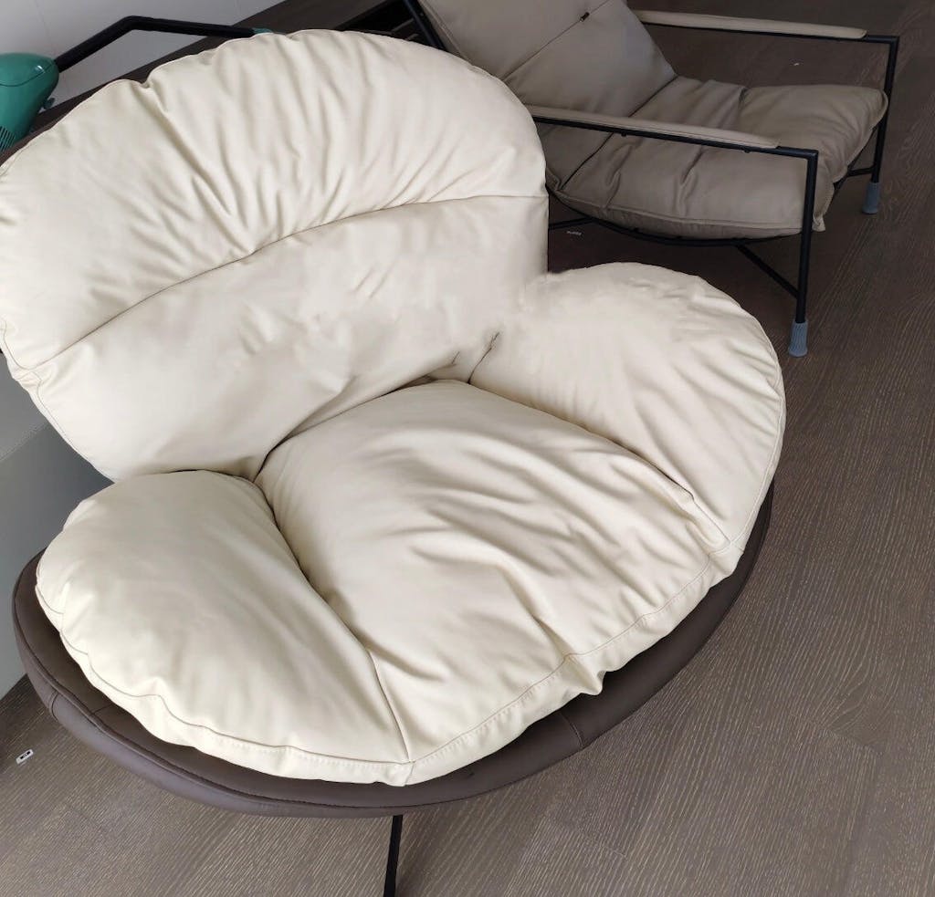The lounge chair, a marvelous blend of science and aesthetics, contours its rounded shape with simplistic lines. Sitting in it feels like being enveloped by a cozy cloud, providing both comfort and fullness. Its design not only takes into account human ergonomics but also incorporates a relentless pursuit of coziness.