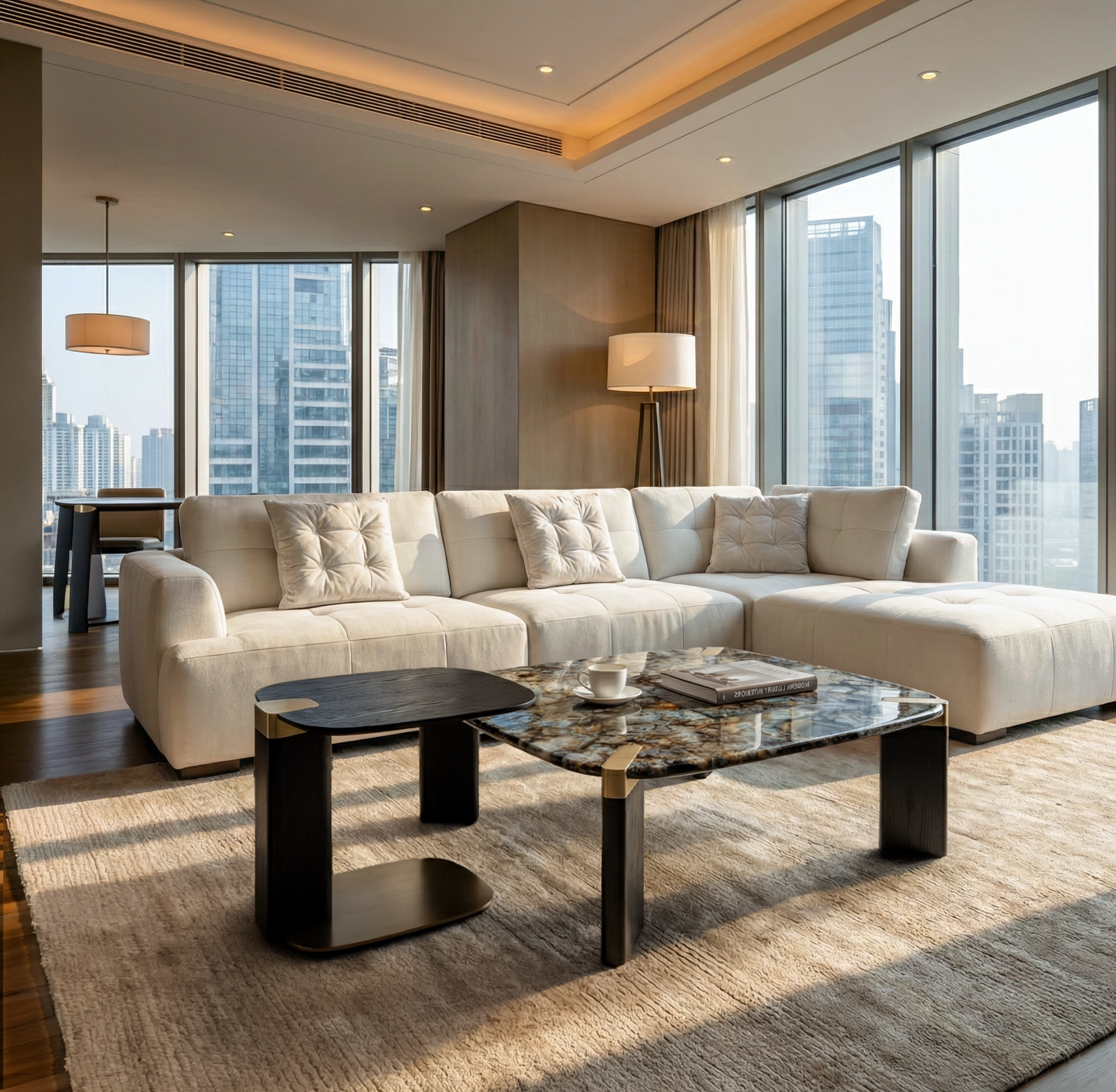 - Marble Surface Coffee Table: Each tabletop features unique natural textures. The material is highly resistant to abrasion, scratches, and high temperatures, ensuring long-lasting durability and a sleek appearance.