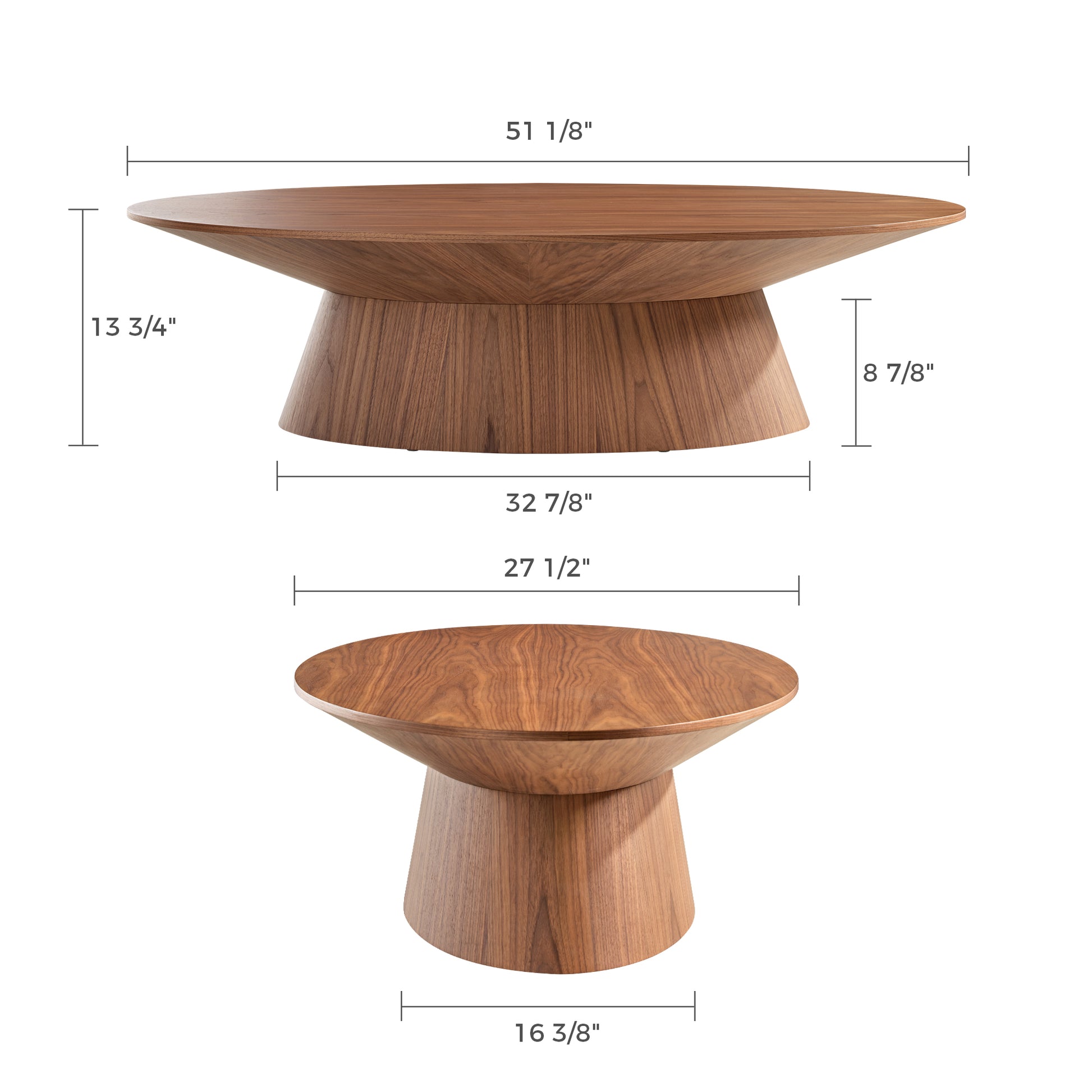 The coffee table's flared base & sleek top create a warm aesthetic, allowing it to fit seamlessly in any living area.
