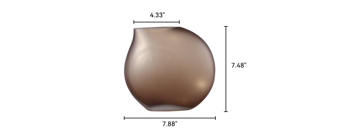 The vase is made of frosted glass. Hand crafting makes each piece one of a kind.