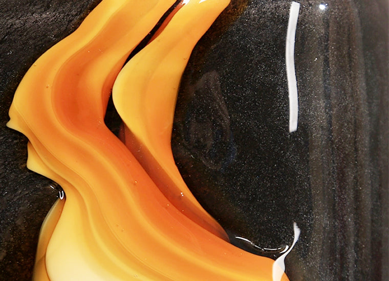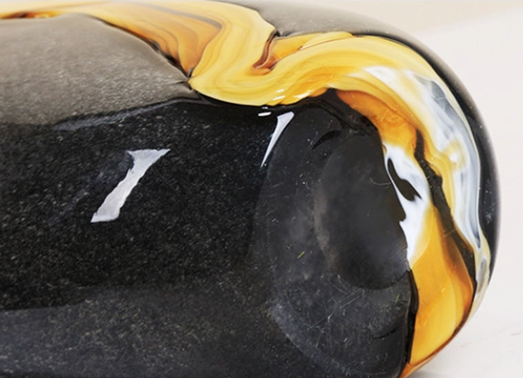 - STUNNING DESIGN: Transform any space into a captivating oasis with our uniquely crafted glass vase. The striking combination of black and a radiant golden streak instantly adds a touch of elegance to your home décor.
