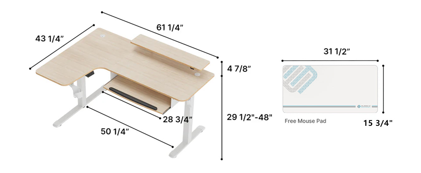 L-Shaped Standing Desk with Accessories Set (60"x23")