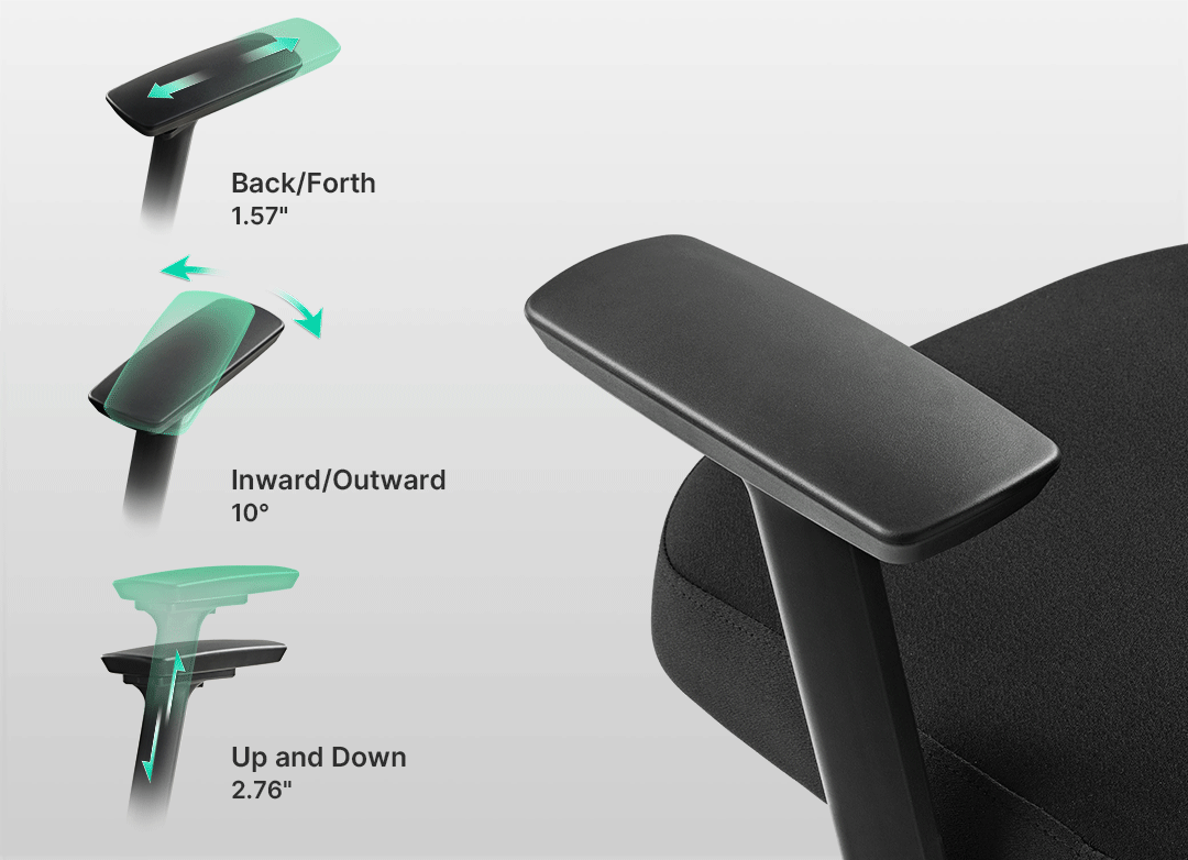 The lumbar support can be adjusted up and down by 1.18" and forward and backward by 1.18", ensuring a precise fit to the lumbar curve. This effectively relieves pressure on the lower back, enhances seating comfort, and promotes lumbar health.