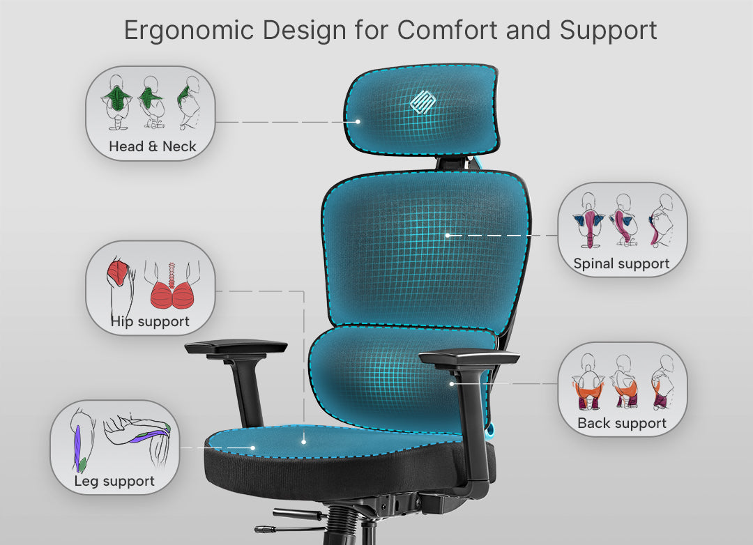 Our R&D team prioritized ergonomics and adjustability in Axion's design. Features like the 4D headrest, lumbar support, armrests, and seat depth adjustment provide personalized support and comfort for various users.