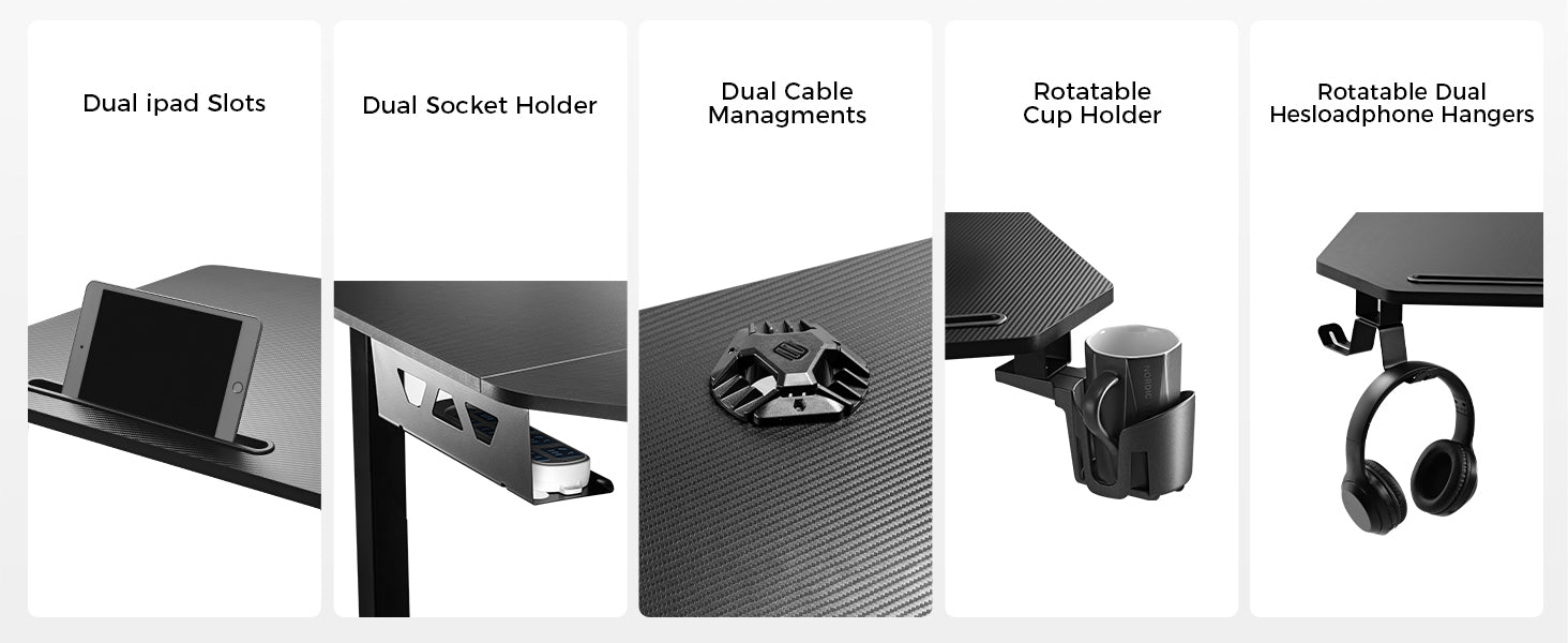 Often equipped with built-in accessories like cable management systems, sockets, USB ports, offering a neater and more convenient workspace.