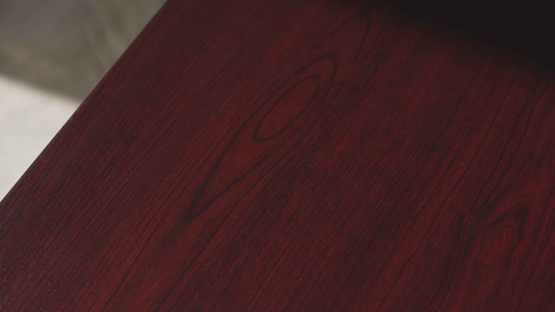 A cherry wood desktop nods to traditional design while bringing a modern update to the workspace.
