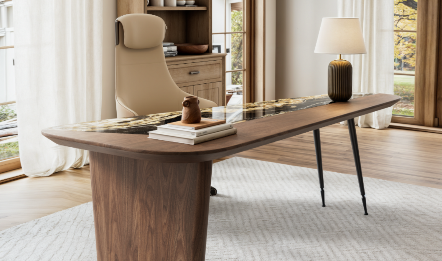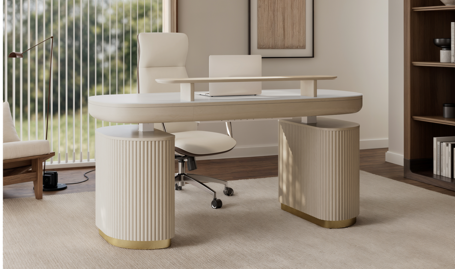 Refresh your workspace with meticulous design, graceful silhouettes, and creamy textures, creating a refined, organized, and functional home office
