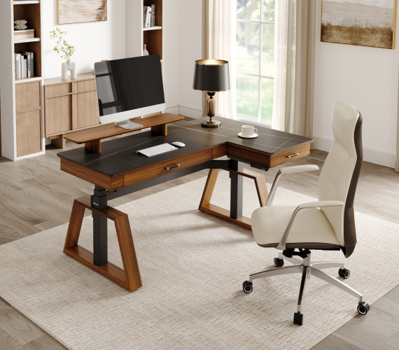 Ark Pro L-Shaped Standing Desk (Sintered Stone, 63"x23")