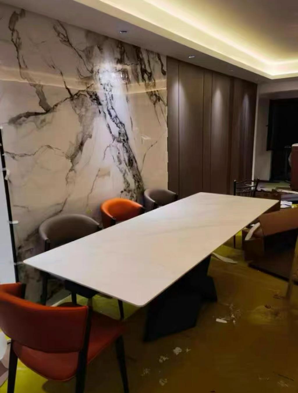 - High-Quality Materials: Crafted with a white Slate tabletop and black carbon steel legs, ensuring durability and a sleek look.